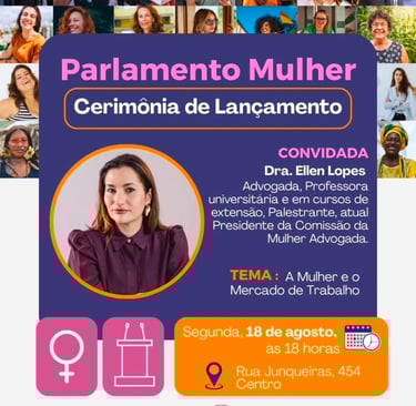 Por conta de minha experiência e expertise em direito da mulher participo de diversas palestras, eventos e posdcasts sobre o assunto.